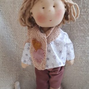 Muñeca con chaleco de lana personalizada