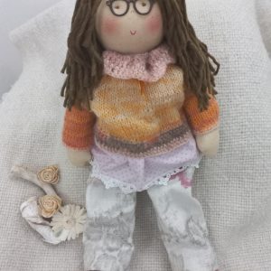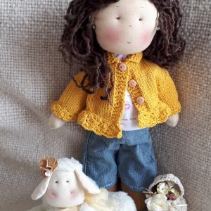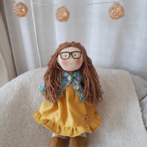 Muñeca con chaleco mostaza perzonalizada