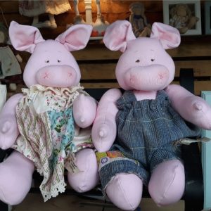 Casita tope de puerta hecha en felpa y telas de algodón